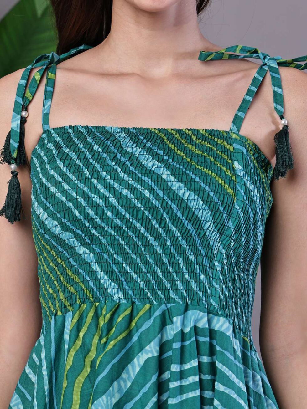 Women’s Leheriya Asymmetrical Hem Smocked A-Line Dress Midi Dresses